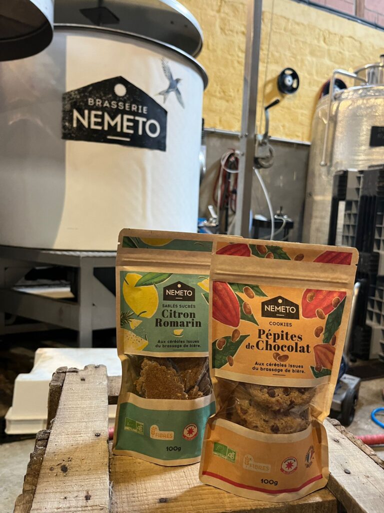Au sein de la brasserie Nemeto, « nous avons également une biscuiterie innovante. En réutilisant les céréales de brassage de bière (drêches), un précieux sous-produit du brassage de la bière, nous confectionnons des biscuits de qualité et savoureux. Cette approche nous permet de réduire le gaspillage et de revaloriser cette ressource, tout en offrant une expérience gustative enrichissante.