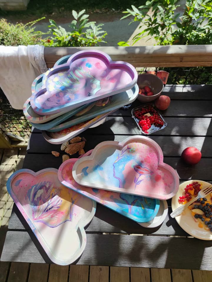 Aujourd’hui, elle présente exceptionnellement une série de plateaux-tableaux, pièces uniques , ainsi que images 100% uniques, 100 % faite main, zéro impression, autrement dit : des œuvres qu’on peut adopter, emporter chez soi.Ainsi, ces plateaux-tableaux et petits formats incarnent un nouveau mode d’accès à son univers : tout en restant fidèle à son esthétique poétique et à son regard sur la matière, l’artiste propose des objets concrets, prêts à s’inscrire dans un quotidien.