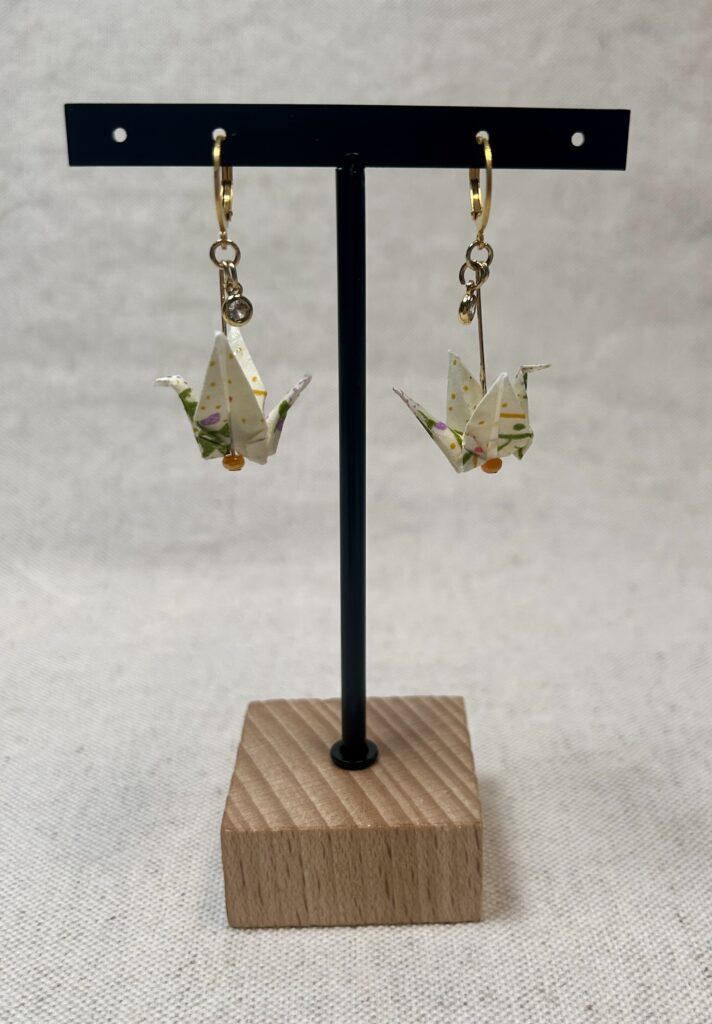 Mon pliage se concentre sur la création de bijoux et d’objets de décoration d’intérieur à partir du papier Washi qui est fabriqué de façon artisanale au Japon à partir d’écorces de mûrier Koso. Ce papier est réputé pour sa résistance, ses motifs et couleurs vives.